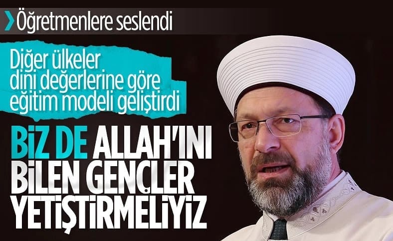 Erbaş, eğitim modelleri üzerinde durduktan sonra öğretmenlerden, milli ve manevi değerlerle yoğrulmuş, iyi derecede bir veya birkaç yabancı dil bilen, yaşadığı çevreye olumlu katkı sağlayan, kendini ve Rabb'ini bilen örnek gençlerin yetiştirilmesi gerektiğini vurguladı.