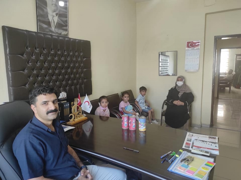 "Ülkemizde yaşanan savaştan dolayı Türkiye'ye 5-6 yıl önce yerleştik. Bize kapılarını ve gönlünü açan Türkiye Cumhuriyeti Devleti, o zamandan bu güne kadar bize hep yardımcı oldu, ihtiyaçlarımızı karşıladı. Batı illerinde yaşanan bu yangınlardan dolayı yüreğimiz acıdı, çok üzüldük. Eşimle beraber yangın haberlerini üzüntülü bir şekilde televizyondan izlerken kızım Gülnar, aldığı kalem ve kağıt ile yangından etkilenen ağaç, ev ve insan resimlerini çizmiş, gelip bana gösterdi. Resmi görünce ben çok duygulandım. Gülnar ve diğer çocuklarım sözbirliği etmişçesine, 'Anne biz kumbaralarımızdaki paraları, yangından zarar gören insanlara göndermek istiyoruz' dediler. Biz de Kızılay'ın başlattığı yardım kampanyasına naçizane destek olmak için çocuklarımızın kumbara harçlıklarını size getirdik."