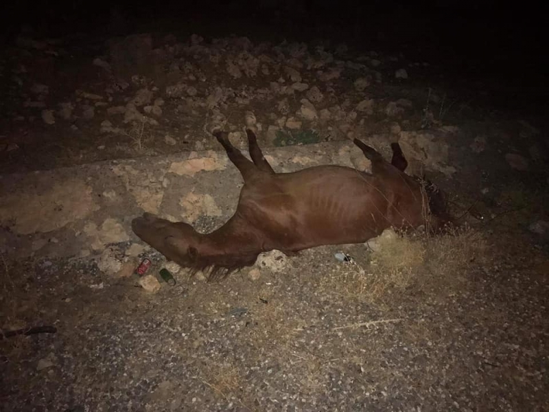 İdil’de yolun karşısına geçmeye çalışan başıboş iki at, bir otomobil çarpması sonucu telef oldu