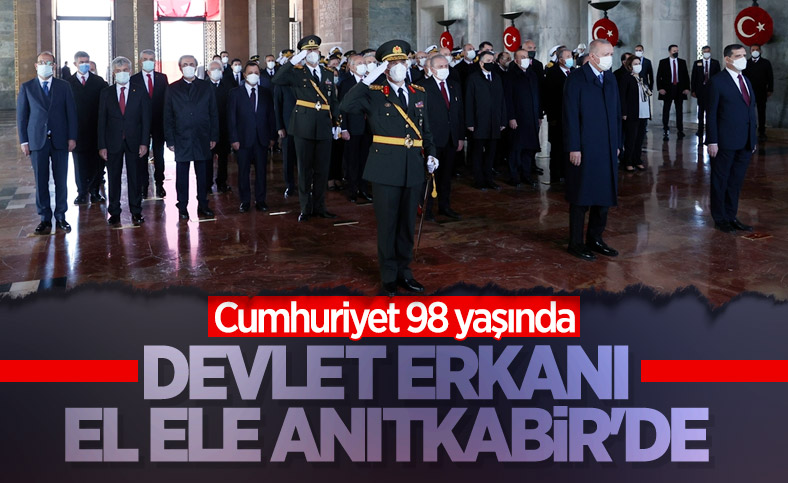 Cumhurbaşkanı Recep Tayyip Erdoğan ve devlet erkanı, 29 Ekim Cumhuriyet Bayramı'nın 98’inci yıl dönümünde Anıtkabir'e çıktı.