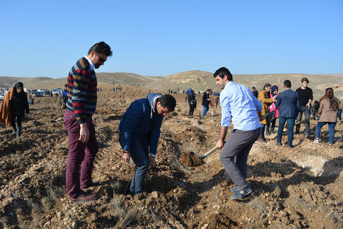 Batman Üniversitesi tarafından Batı Raman Kampüs alanının Dicle Nehri kenarında oluşturulan 'Şehitler Ormanı'na 2 bin adet badem 300 adet çam fidanı dikildi.