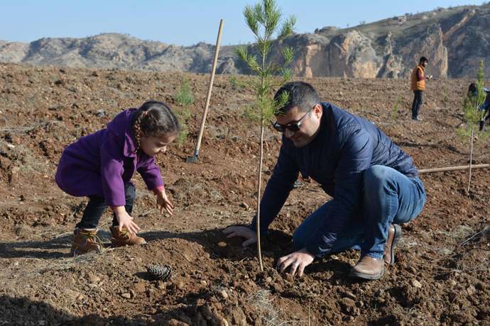 Konuşmaların ardından Batman İl Müftüsü Turgut Erhan'ın yaptığı dualar sonrası fideleri dikildi.