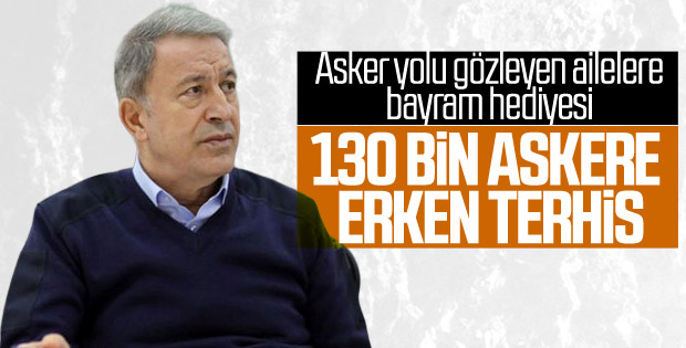 Yeni düzenlemeyi bekleyen askerlere, Milli Savunma Bakanı Hulusi Akar'dan müjdeli haber geldi. Akar, terhislerin, bayram öncesinde başlayabileceğini duyurdu.