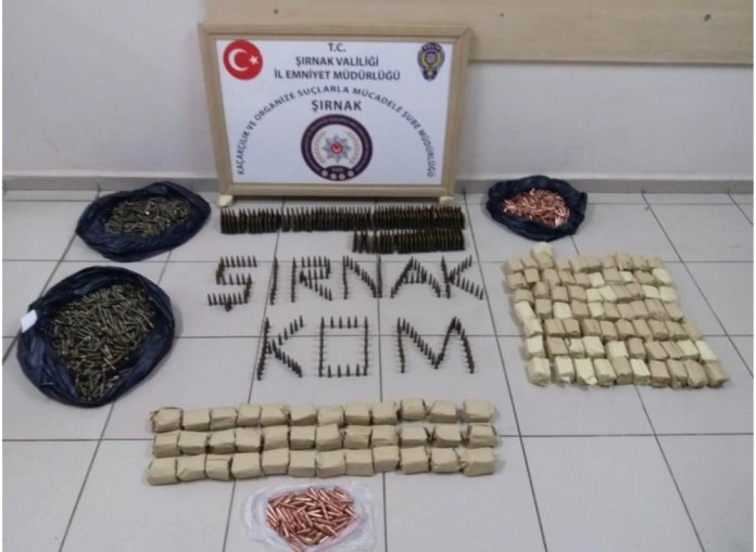 Şırnak İl Emniyet Müdürlüğü'nden yapılan açıklamada, Kaçakçılık ve Organize Suçlarla Mücadele Şube Müdürlüğü tarafından silah ve mühimmat kaçakçılığı yapan şahıslara yönelik çalışma gerçekleştirildiği belirtildi. Açıklamada, "24 Haziran 2019 günü saat 19.45 sıralarında köy hizmetleri polis uygulama noktasında durumundan şüphelenilerek durdurulan araçta yapılan aramada 6 bin 700 adet 7.62 çarpı 39 milimetre çapında dolu mühimmat ele geçirilerek el konulmuştur. Konu ile ilgili olarak C.A ve S.Ç. isimli şahıslar hakkında 6136 Sayılı Kanuna Muhalefet suçu kapsamında yasal işlem yapılmış ve 2 şüpheli gözaltına alınmıştır" denildi.