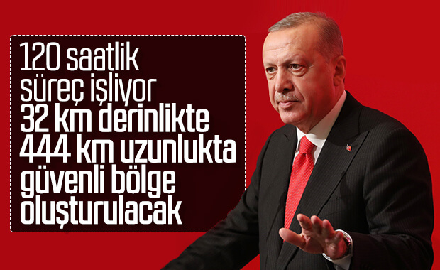 32 km derinlik 444 km uzunlukta güvenli alan oluşturulacak. Buranın sınırı doğuda Irak sınırıdır. Bölgede bir çatışma söz konusu değil. Bu bilgiler dezonformasyondur."